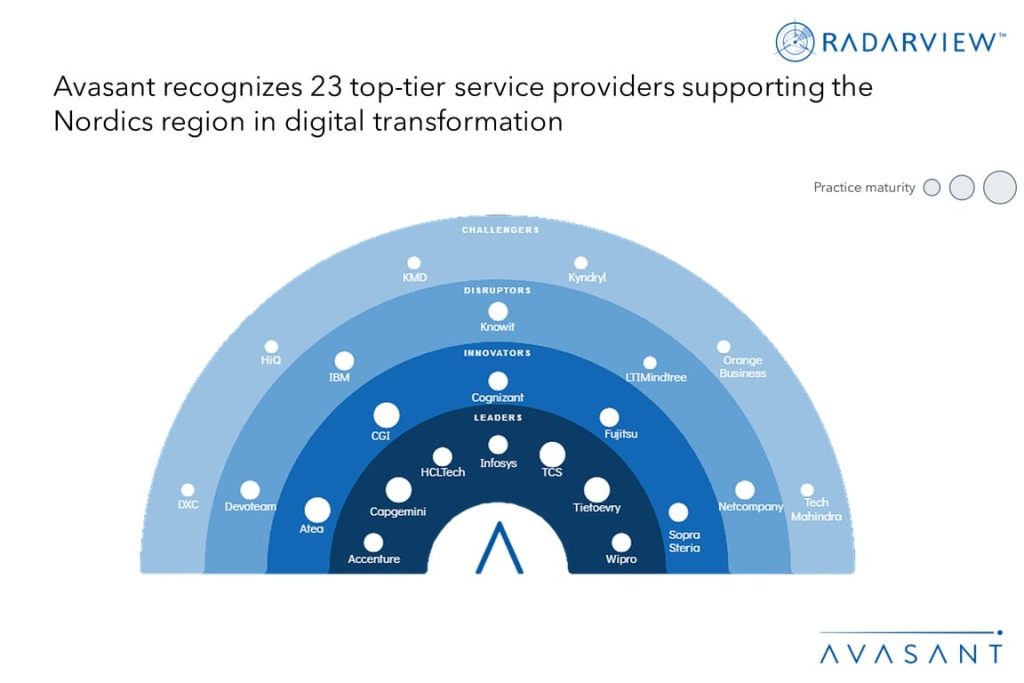 Nordic countries have been at the top of their game when it comes to digital competitiveness and sustainability goals. While governments are looking to further improve citizen services, establish smart cities, and enhance the ease of doing business, they are experiencing critical challenges such as facing digital talent shortages, ensuring cyber resilience, and protecting data sovereignty. Regional enterprises are proactively investing in advanced digital technologies such as AI, analytics, cloud, 5G, IoT, and AR/VR to fuel data-driven innovation, improve customer experience, and solidify their position as global firms while addressing national digitalization objectives. As this requires strong technological expertise and delivery capabilities, Nordic firms are collaborating with service providers for digital transformation. Both demand-side and supply-side trends are covered in our Nordics Digital Services 2023–2024 Market Insights™ and Nordics Digital Services 2023–2024 RadarView™, respectively.