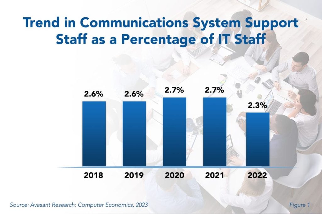 Hybrid work is making corporate communications systems more complicated as cloud-based communications solutions and the advancing presence of AI reshape the role of communications support staff members. Nevertheless, IT organizations have been able to manage this growing complexity without adding to communications systems support staffing. This Research Byte provides a summary of our full report on communications support staffing ratios.