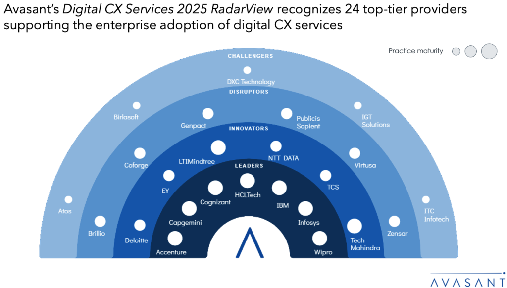 The Digital CX Services 2025 RadarView™ assists organizations in identifying strategic partners for digital CX services by offering detailed capability and experience analyses for service providers. It provides a 360-degree view of key digital CX service providers across practice maturity, partner ecosystem, and investments and innovation, thereby supporting enterprises in identifying the right digital CX services partner. The 71-page report highlights top supply-side trends in the digital CX services space and Avasant’s viewpoint on them.