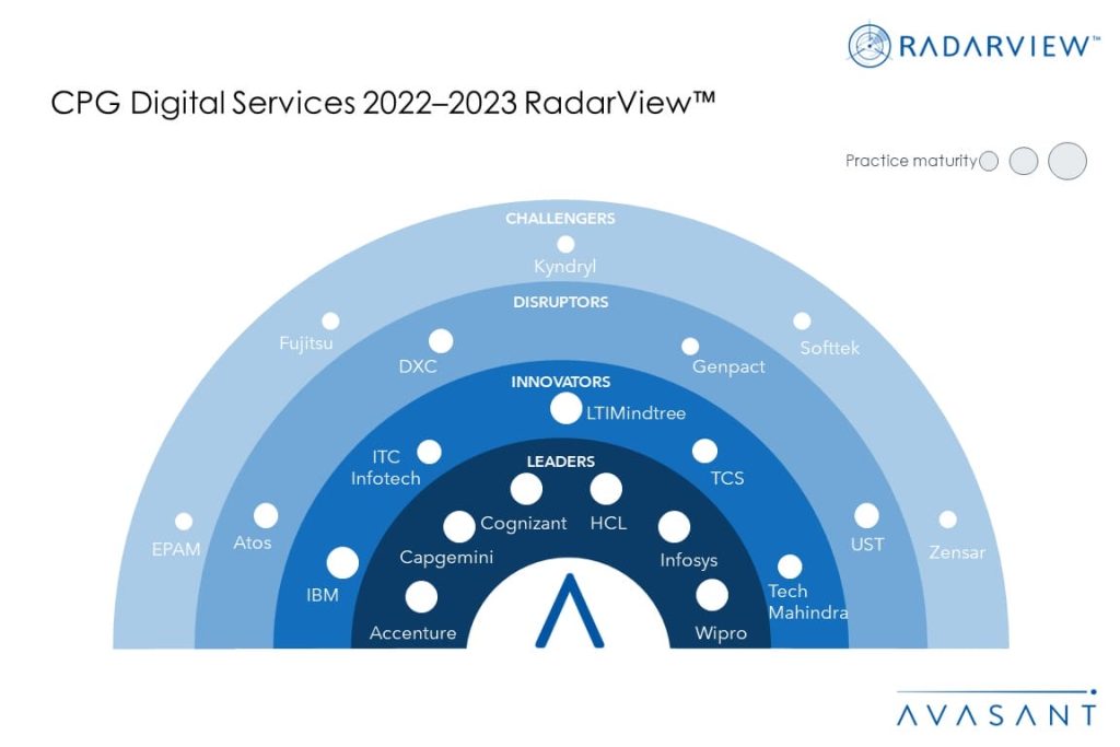 CPG manufacturers have recently enjoyed boom times resulting from the increase in consumer spending since the start of the pandemic. However, they now anticipate shrinking profit margins due to higher inflation and supply chain disruptions. In response, they are investing in digital technologies to meet these challenges, collaborating with service providers for digital transformation to take advantage of their strong domain and technical experience. These emerging trends are covered in Avasant’s CPG Digital Services 2022–2023 RadarView™.