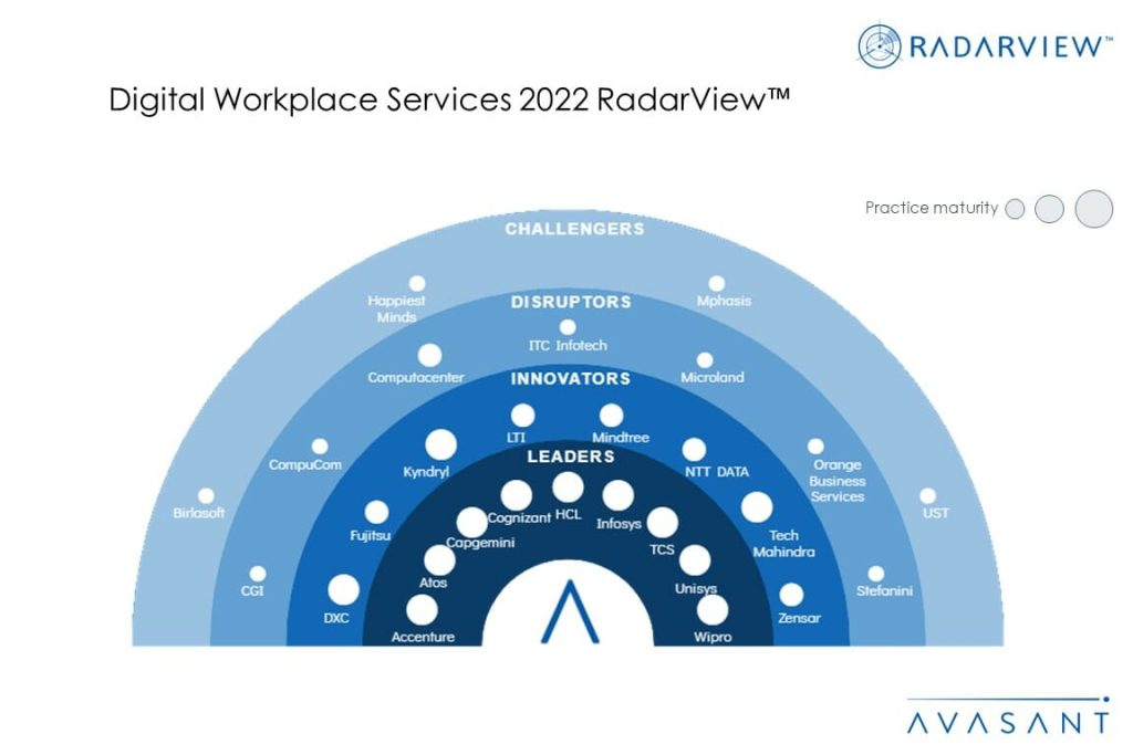 The Digital Workplace Services 2022–2023 RadarView™ assists organizations in identifying strategic partners for workplace transformation by featuring detailed capability and experience analyses of leading service providers. It provides a 360-degree view of key digital workplace services providers across practice maturity, partner ecosystem, and investments and innovation, thus supporting enterprises in identifying the right workplace transformation partner. The 96-page report also highlights top market trends in the digital workplace space and Avasant’s viewpoint.