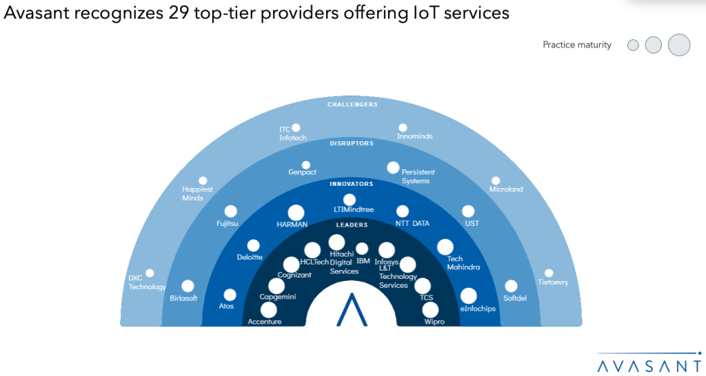 The Internet of Things Services 2025 RadarView™ assists organizations in identifying strategic partners for IoT platforms and services implementation by featuring detailed capability and experience analyses for leading service providers. It offers a 360-degree view of key providers for IoT services across practice maturity, partner ecosystem, and investments and innovations, thus supporting enterprises in identifying the right transformation partner. The 111-page report also highlights top supply-side trends in the IoT space and Avasant’s viewpoint on them.