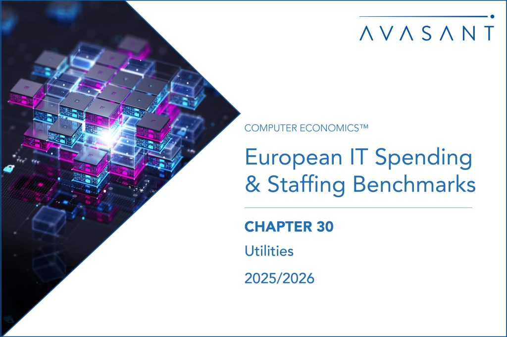 Chapter 30 provides benchmarks for utility companies. The 20 respondents in this subsector range in size from over €200 million to around €60 billion in annual revenue. This category includes gas and electric utilities, power transmission distributors, water and power utilities, and telecommunications service providers.