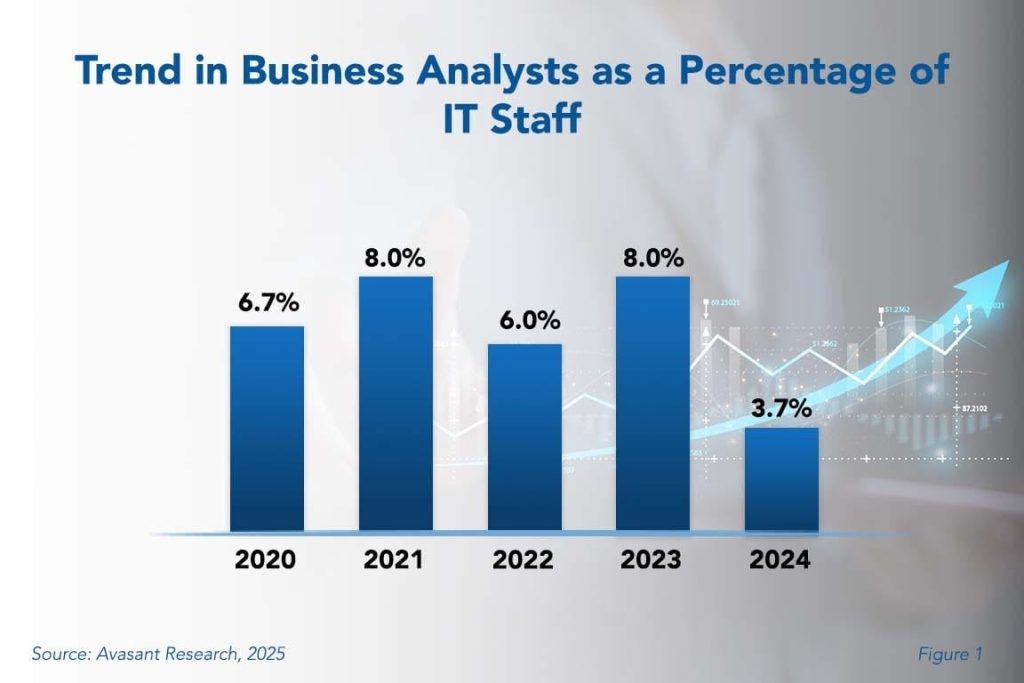 The number of business analysts in the IT department is decreasing, but the importance of the role is not. Business analyst staffing is undergoing a significant transformation due to the rapid advancement of technologies such as AI, automation, and real-time data analytics. This necessitates a stronger focus on foundational IT infrastructure, leading to increased demand for technology infrastructure and support roles. This Research Byte summarizes our full report on business analyst staffing ratios.