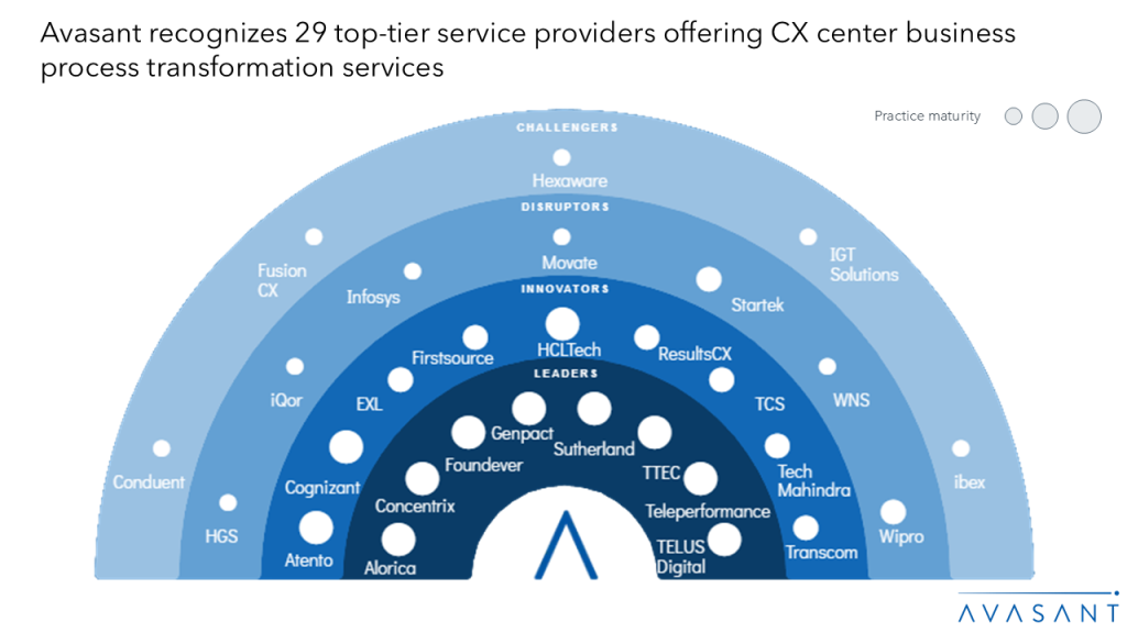 The CX Center Business Process Transformation 2024–2025 RadarView™ provides information to assist enterprises in building a CX center service strategy and charting an action plan for customer service transformation. It identifies key global CX center service providers that can help expedite this transformation. It also brings out detailed capability and experience analyses of leading providers to assist businesses in identifying the right strategic partners. The 84-page report highlights key industry trends in the contact center space and Avasant’s viewpoint.
