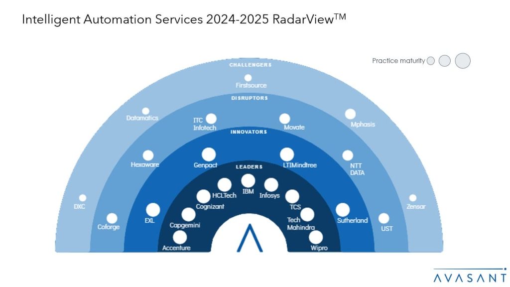 The Intelligent Automation Services 2024–2025 RadarView™ assists organizations in identifying strategic partners for IA services by offering detailed capability and experience analyses for service providers. It provides a 360-degree view of key IA service providers across the dimensions of practice maturity, partner ecosystem, and investments and innovation, thereby supporting enterprises in identifying the right service partner. The 69-page report highlights top supply-side trends in IA space and Avasant’s viewpoint on them.