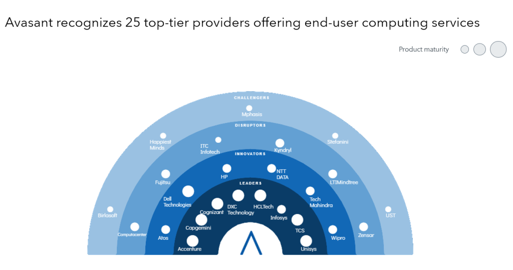 The End-user Computing Services 2024–2025 RadarView™ assists organizations in identifying strategic partners for end-user computing service transformation by featuring detailed capabilities and analyses of leading service providers. It provides a 360-degree view of key end-user computing service providers across practice maturity, partner ecosystem, and investments and innovation. The 72-page report highlights top supply-side trends in the end-user computing services space and Avasant’s viewpoint on them.