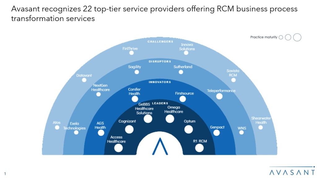 The Revenue Cycle Management (RCM) Business Process Transformation 2024 RadarView™ assists organizations in identifying strategic partners for RCM services by offering detailed capability and experience analyses of service providers in this space. It provides a 360-degree view of the service providers across practice maturity, domain ecosystem, and investments and innovation, thereby supporting enterprises in identifying the right RCM services partner. The 66-page report highlights top supply-side trends in the RCM services space and Avasant’s viewpoint.