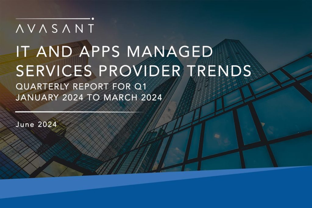In this quarterly report (calendar quarter 1, 2024), Avasant provides key information on IT and apps managed services provider trends. The report covers key information on the IT services industry and the provider ecosystem. It covers the service provider facts and figures (including revenue and resource trends), and executive sentiment from the service provider community. The report covers trends across a gamut of IT services, including but not limited to IT infrastructure, application, and end-user services. The geographic coverage for the report is global. It builds on insights gathered through ongoing market research, data collection, and proprietary databases. It includes market data from providers accessed through multiple sources such as public disclosures, market interactions, and deals data.