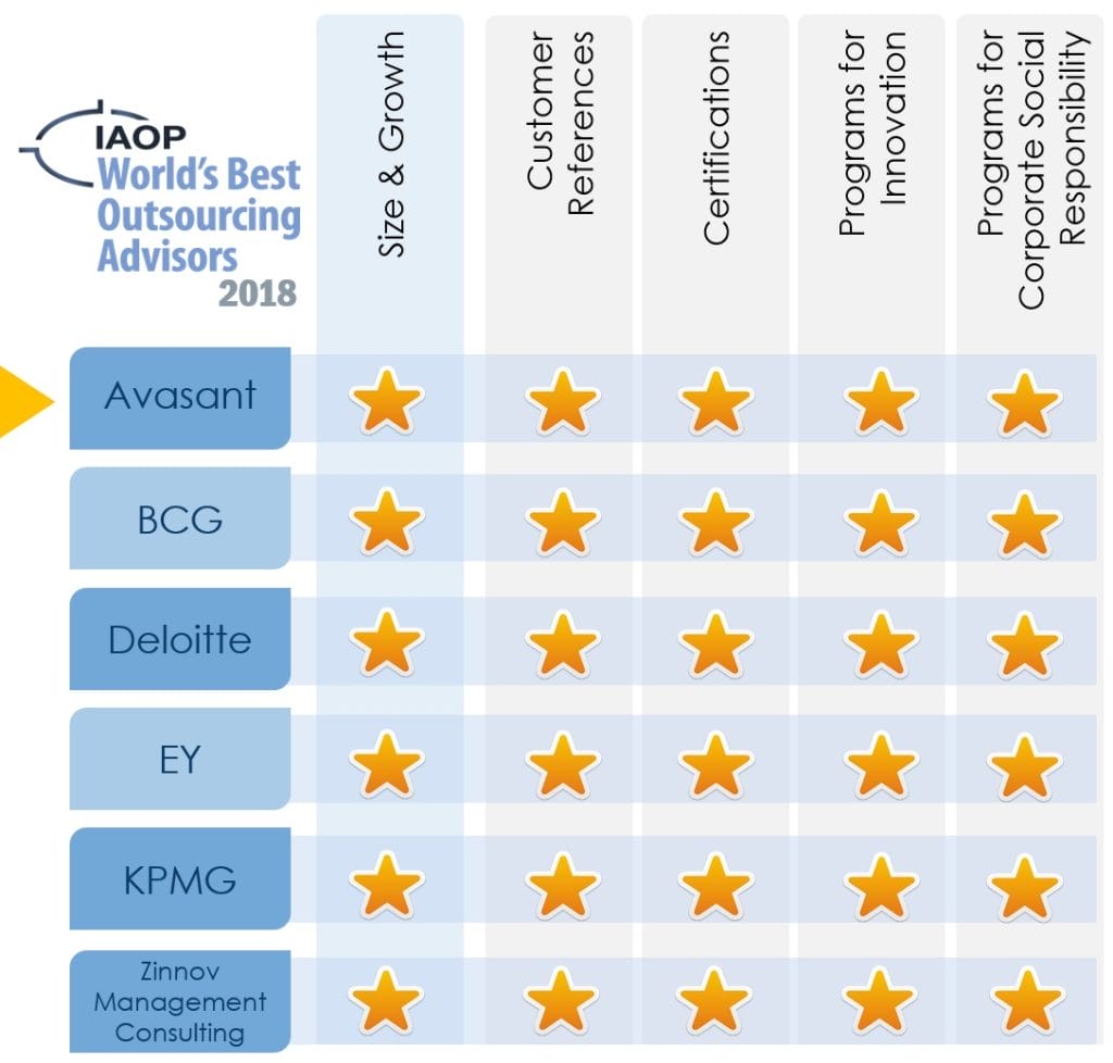 Avasant is proud to have been ranked among the “The Best of The World’s Best Outsourcing Advisors” by the International Association of Outsourcing Professionals® (IAOP®), a position of honor derived from a ten-year track record of outstanding performance.