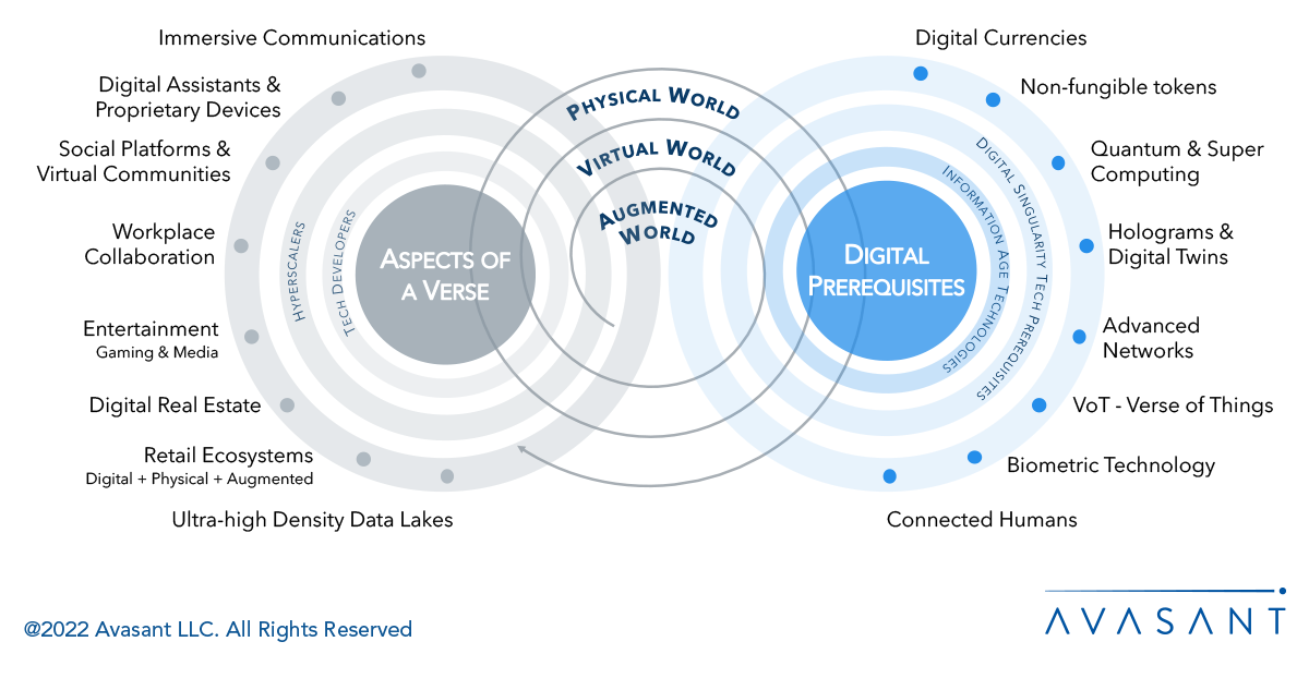As we transition from the Internet to the ‘verse’, The Internet of Things has paved the way for the ‘Verse of Things’. These include physical assets such as drones, autonomous vehicles, sensors and other devices that operate in the real world yet, can connect to the virtual or augmented worlds.