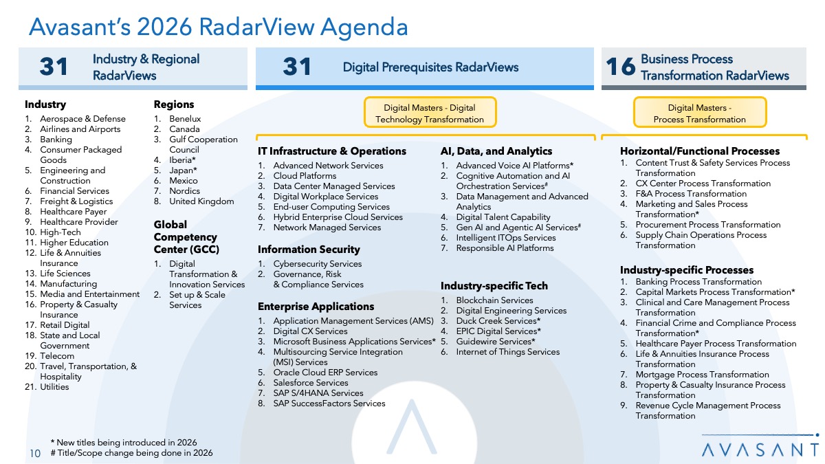 In addition, we will release our flagship Digital Masters RadarView, which includes analysis of six individual RadarViews combining Applied AI and Advanced Analytics Services, Blockchain Services, Cybersecurity Services, Hybrid Enterprise Cloud Services, Intelligent Automation Services, and Internet of Things Services.